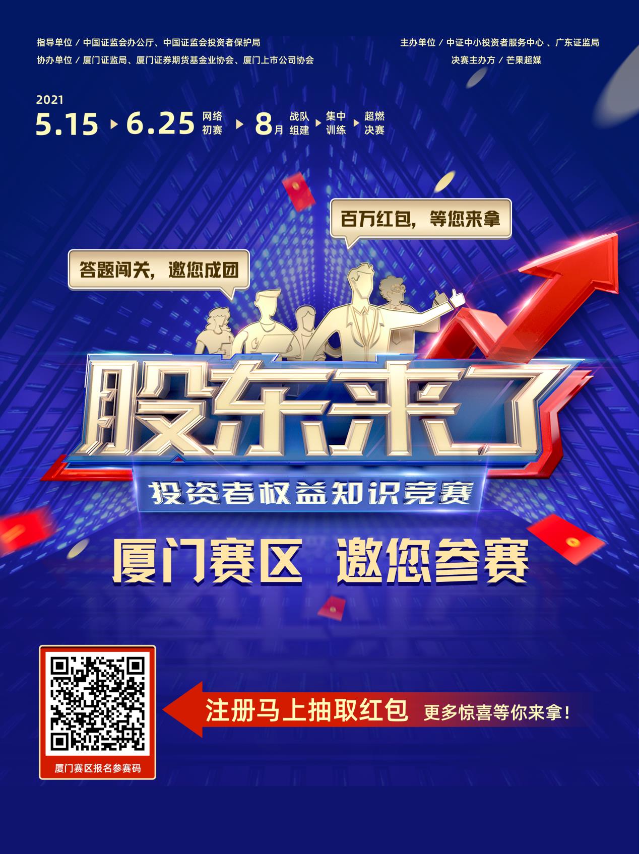2021年是“十四五”規(guī)劃開局之年,為進(jìn)一步落實(shí)證監(jiān)會黨委關(guān)于資本市場人民性要求和保護(hù)投資者合法權(quán)益的職責(zé),在會辦公廳、投保局指導(dǎo)下,投服中心將聯(lián)合廣東、四川、湖北、內(nèi)蒙古、海南、西藏六證監(jiān)局共同舉辦《股東來了》2021投資者權(quán)益知識競賽,面向廣大中小投資者普及權(quán)益知識,示范引領(lǐng)全面知權(quán)、積極行權(quán)、依法維權(quán)。